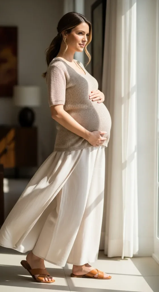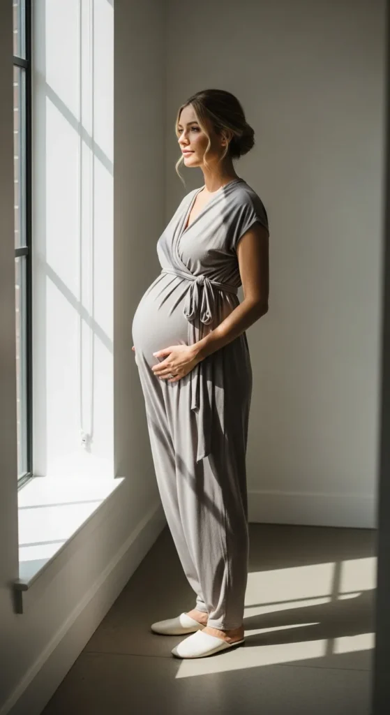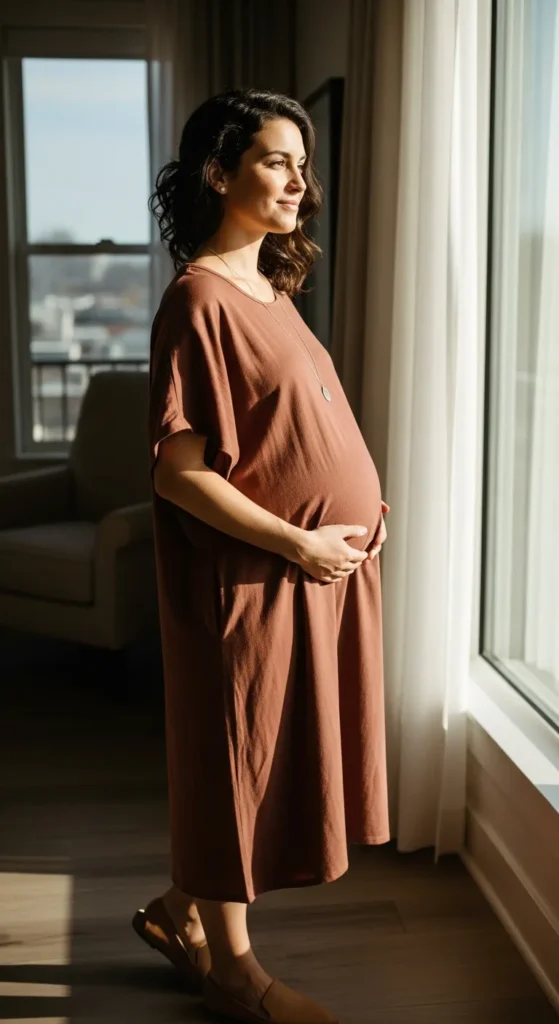 Stylist Suggestion: Choose soft fabrics and neutral tones. This keeps the silhouette flattering and avoids any tight or restrictive feel.