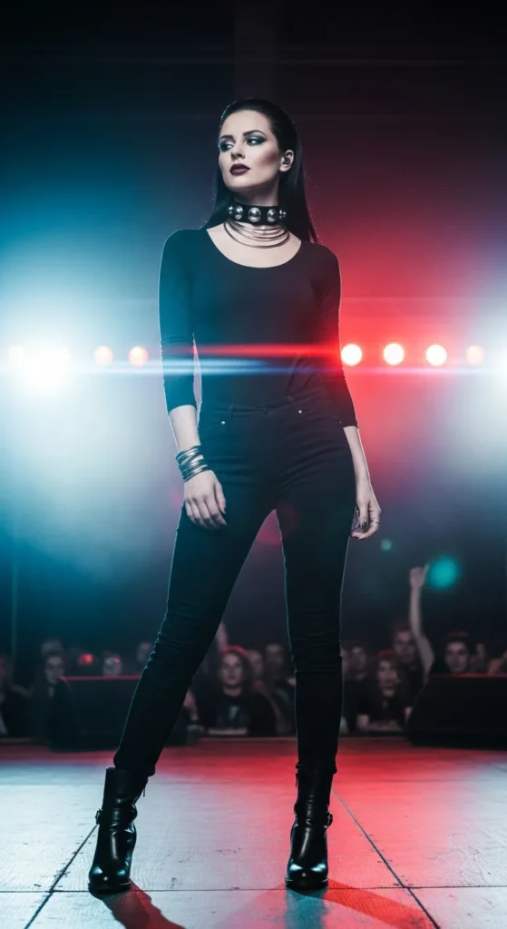 An all-black outfit with clean lines feels powerful and timeless. It doesn’t shout, but it commands attention, especially under dramatic concert lighting.