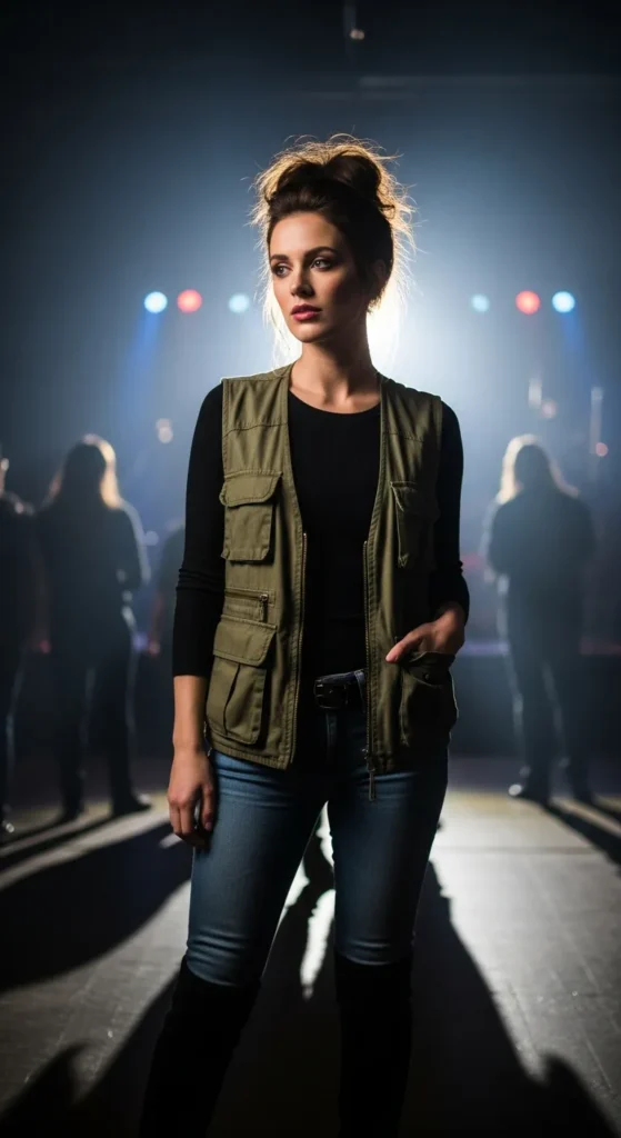 A utility vest layered over a fitted top feels bold and functional. It gives structure to the outfit while still letting your personal style shine through.