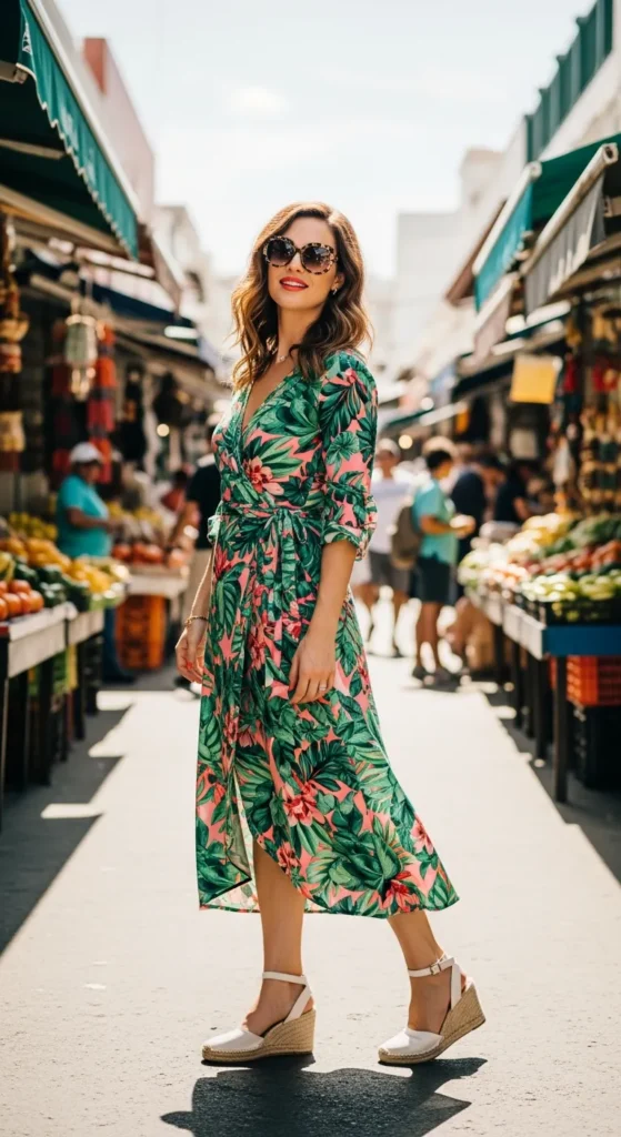 3. Tropical Print Wrap Dress