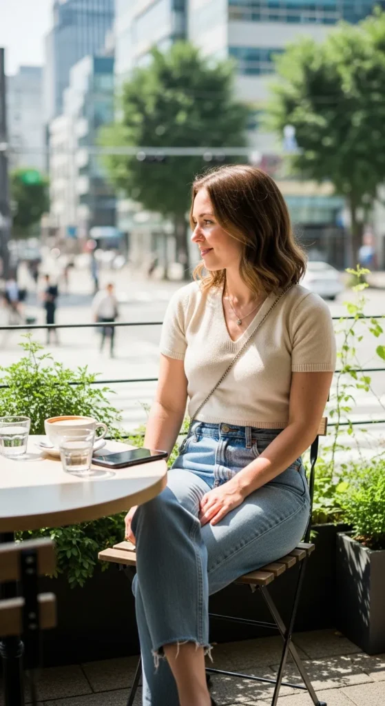 Simple but so Seoul-chic: a fitted cropped knit and straight jeans look feels curated yet easy. Perfect for brunch dates.