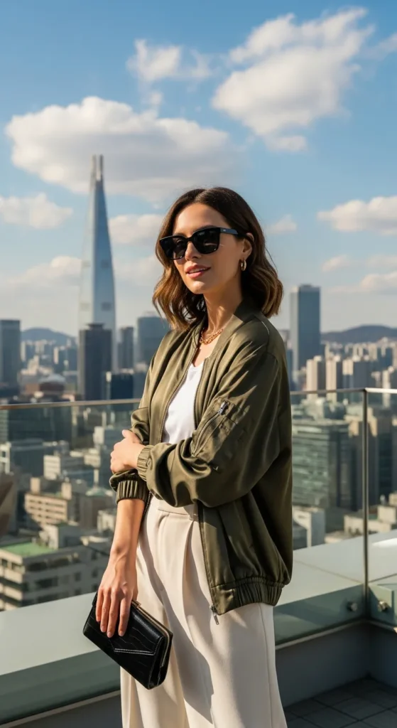 The sheen of a satin bomber paired with wide-leg trousers delivers street‑cool polish without effort.