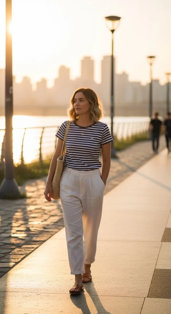 11. Striped Tee with Linen Trousers