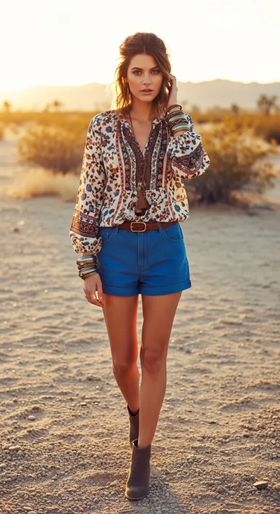 A flowy boho blouse instantly transforms simple denim shorts into something more expressive and artistic. The airy silhouette adds movement and personality.
