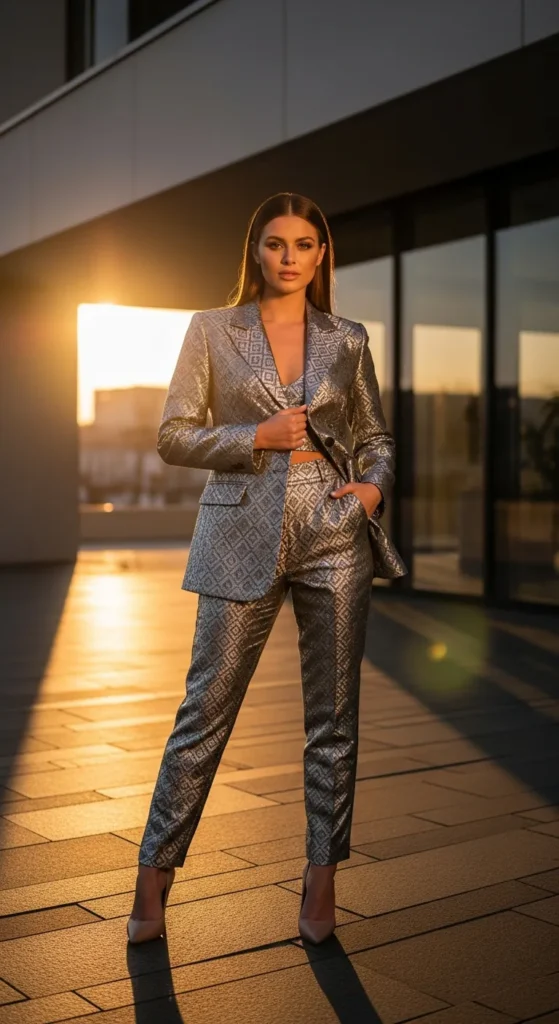 Stylist Suggestion: Add a crossbody bag and natural makeup. Keeping it casual ensures the metallic finish feels wearable, not costume-like.