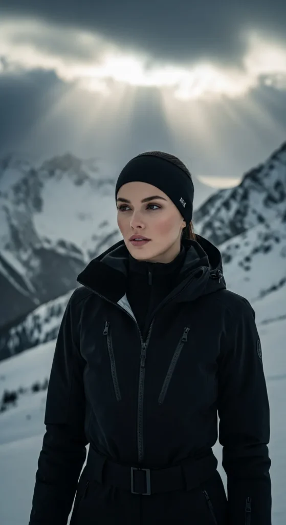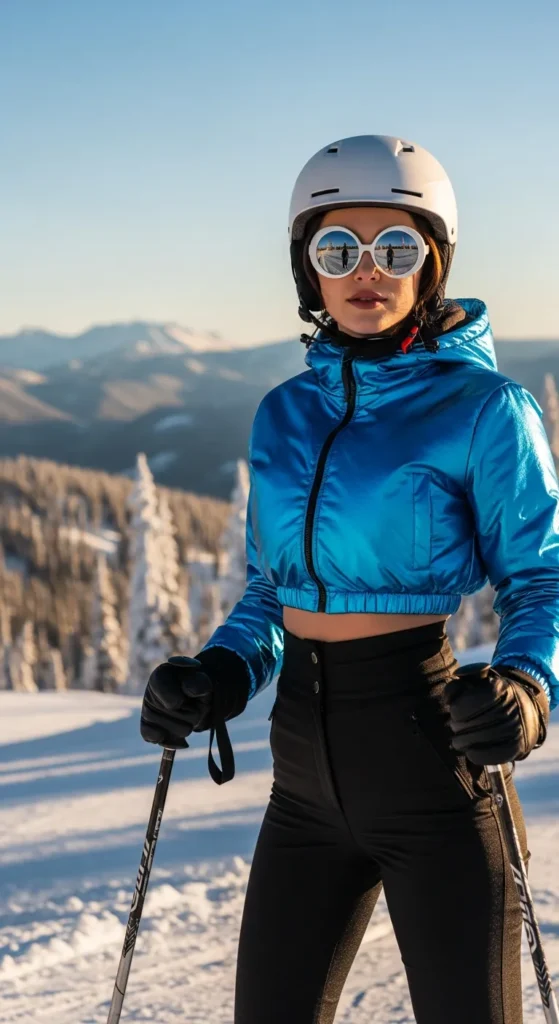 Stylist Suggestion: Add mirrored ski goggles and a low ponytail. The reflective lens balances the color contrast while keeping the look sporty and clean, especially in bright mountain light.