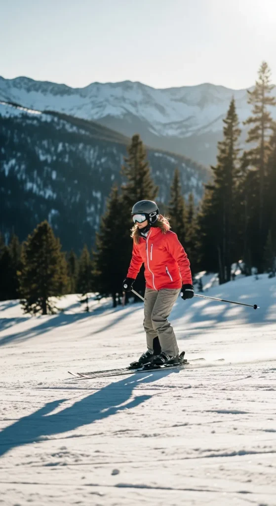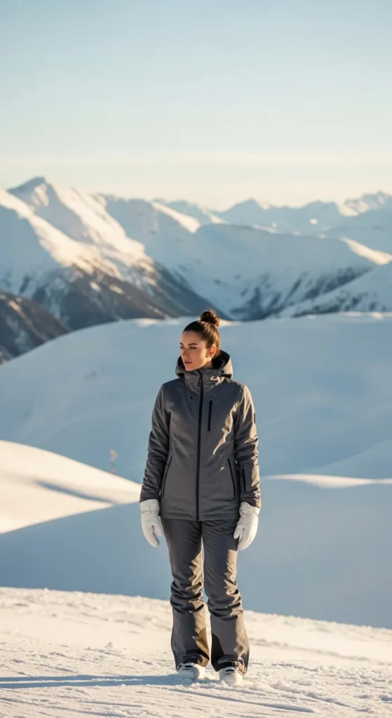 This outfit blends a soft insulated jacket with stretch pants that work both on and off the slopes. It’s practical for women who move between skiing and social moments easily.