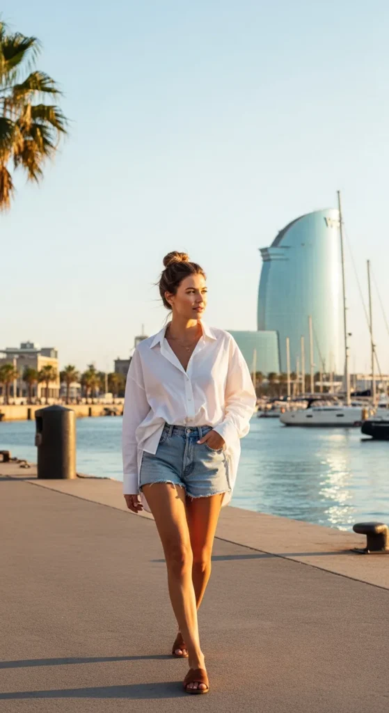 A breezy button-up with denim shorts feels youthful yet refined when styled correctly. It’s ideal for coastal towns and casual city days without crossing into tourist territory.