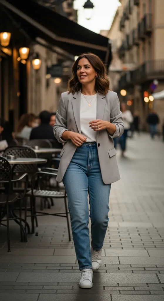 Stylist Suggestion: Roll the blazer sleeves slightly. This softens the tailoring and keeps the look relaxed, aligning better with Spain’s effortless style culture.