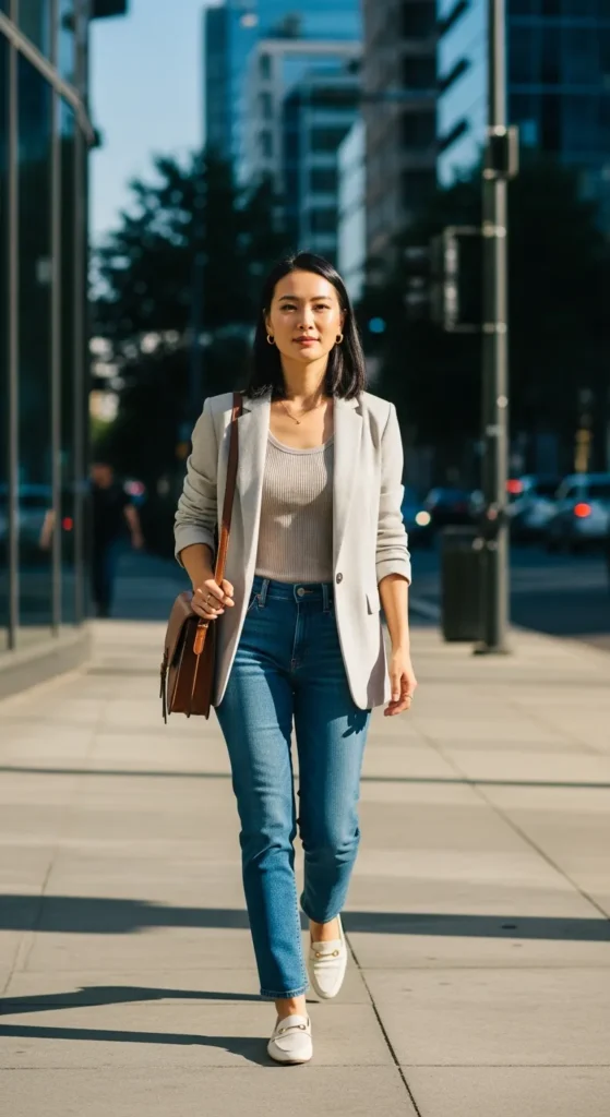 5. Lightweight Blazer with Ribbed Tank and Jeans