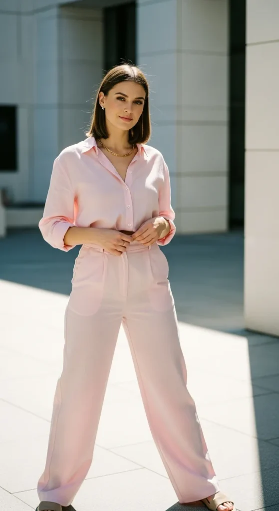 Stylist Suggestion: Keep accessories neutral and hair simple. Let the pastel color be the star, and avoid overpowering the look with bold extras.