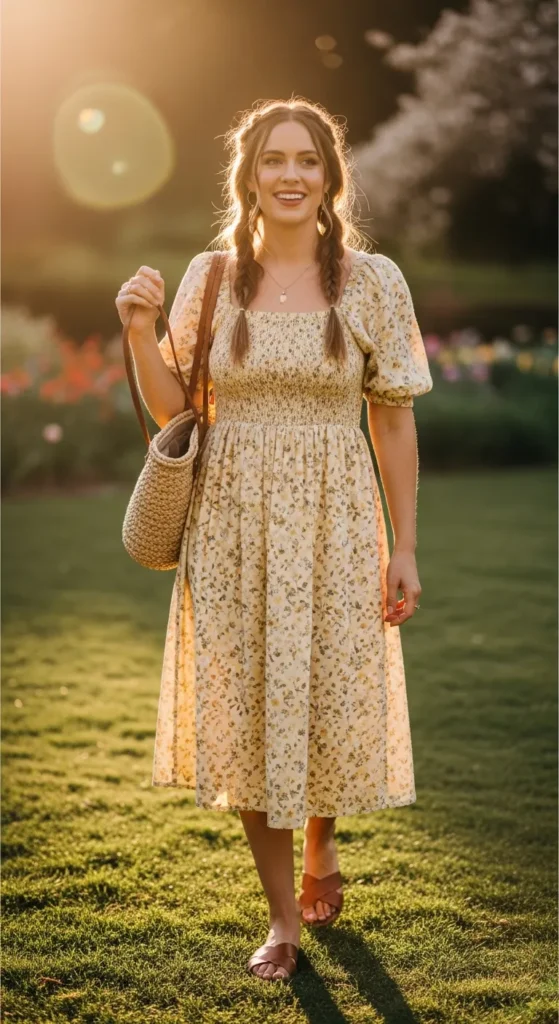 Stylist Suggestion: Add a woven bag and loose braids. These details enhance the relaxed, springtime feel and make the outfit feel naturally styled.