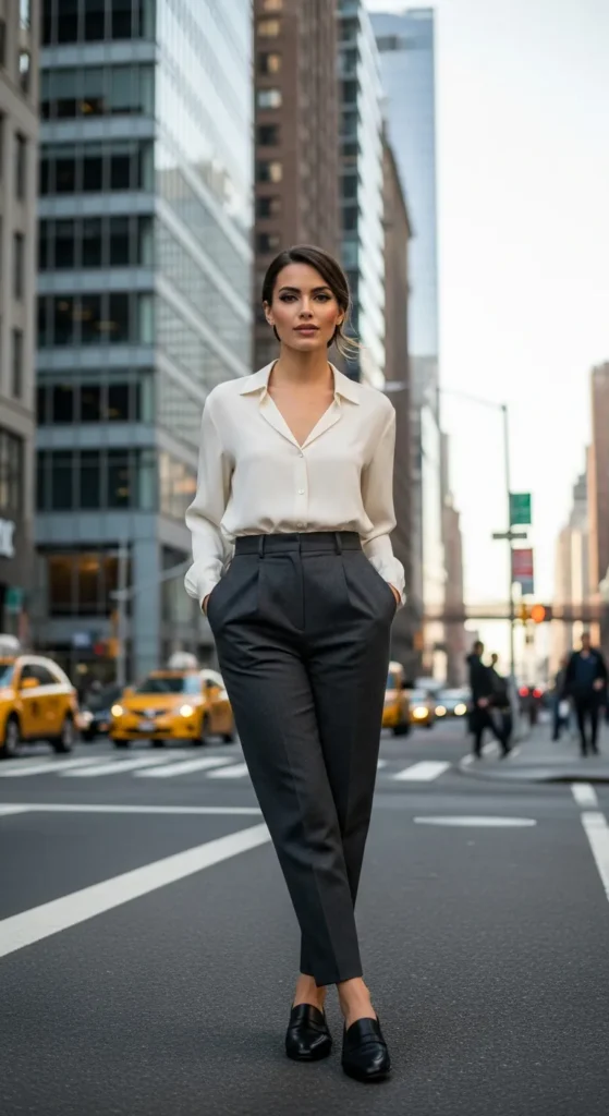 Stylist Suggestion: Choose soft loafers instead of heels. They keep the tailored feel without making the outfit too formal.