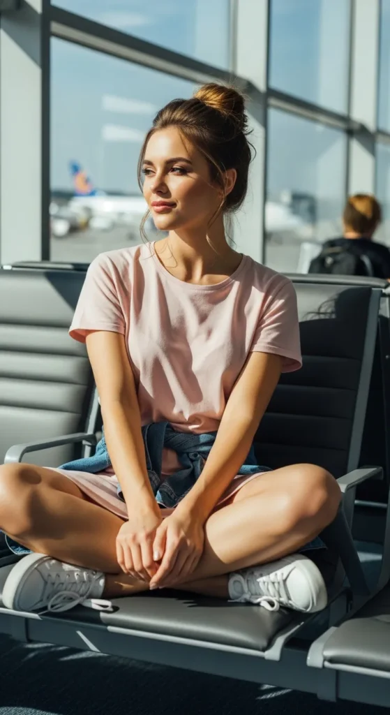 Stylist Suggestion: Slip on white sneakers and a crossbody bag. This balances casual comfort with a trendy edge, ideal for walking long airport terminals while staying photo-ready.