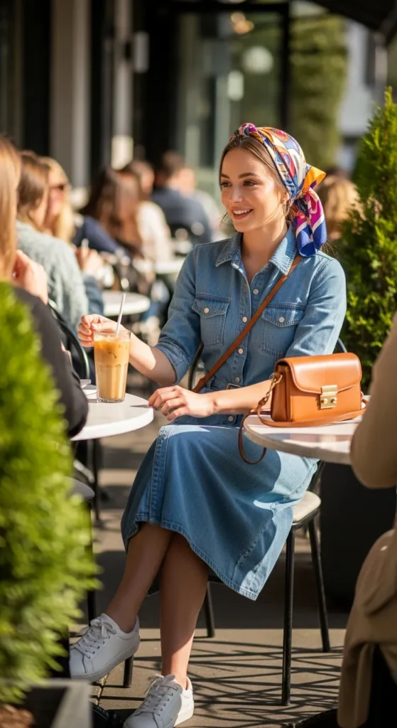 A light denim dress offers an effortlessly cool brunch look that feels casual yet styled. It’s easy to wear and perfect for spontaneous plans after brunch.