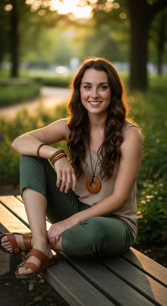 Stylist Suggestion: Choose wooden or earthy accessories to enhance the organic feel, tying the entire outfit together harmoniously.