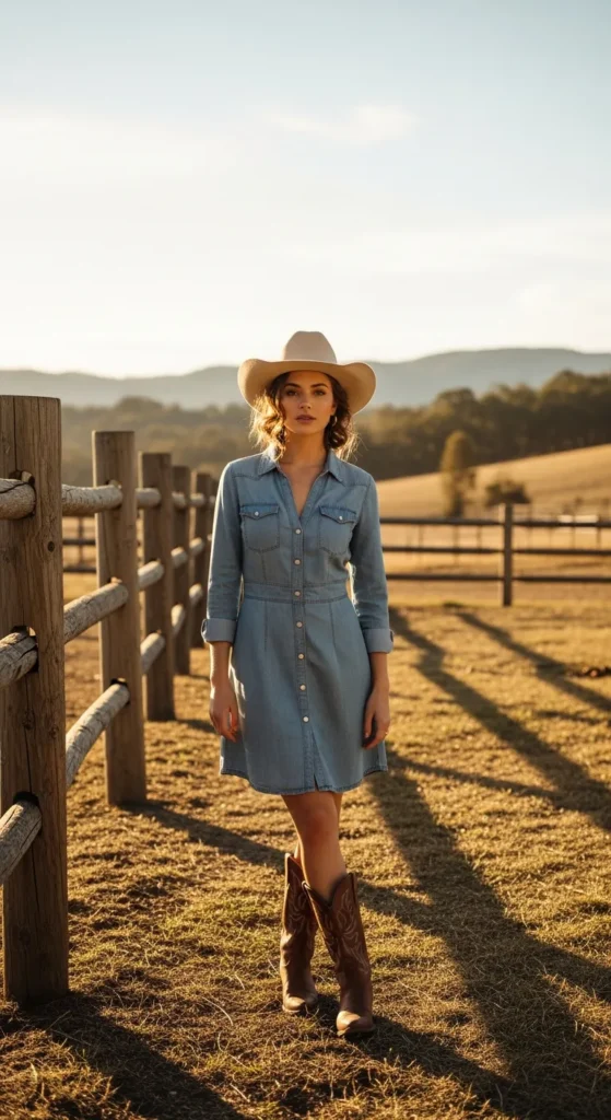 A button-front denim dress instantly captures that classic western charm. The structured denim feels timeless while the simple silhouette keeps the outfit light and perfect for summer adventures.