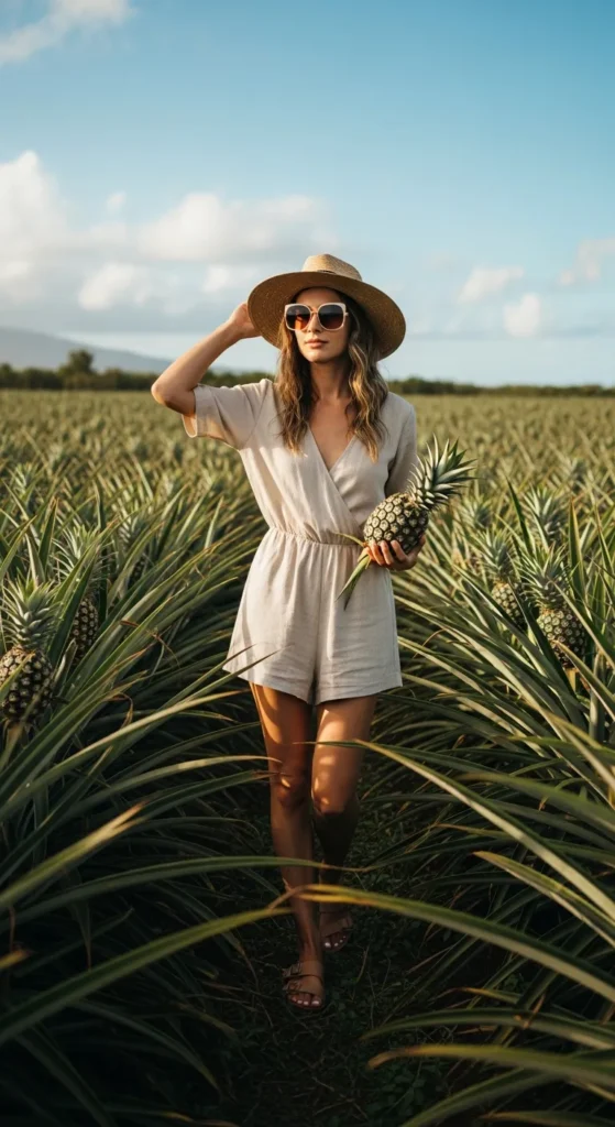 A neutral linen romper is the definition of one-and-done vacation dressing. It’s easy, flattering, and perfect for spontaneous beach walks or pineapple farm visits.