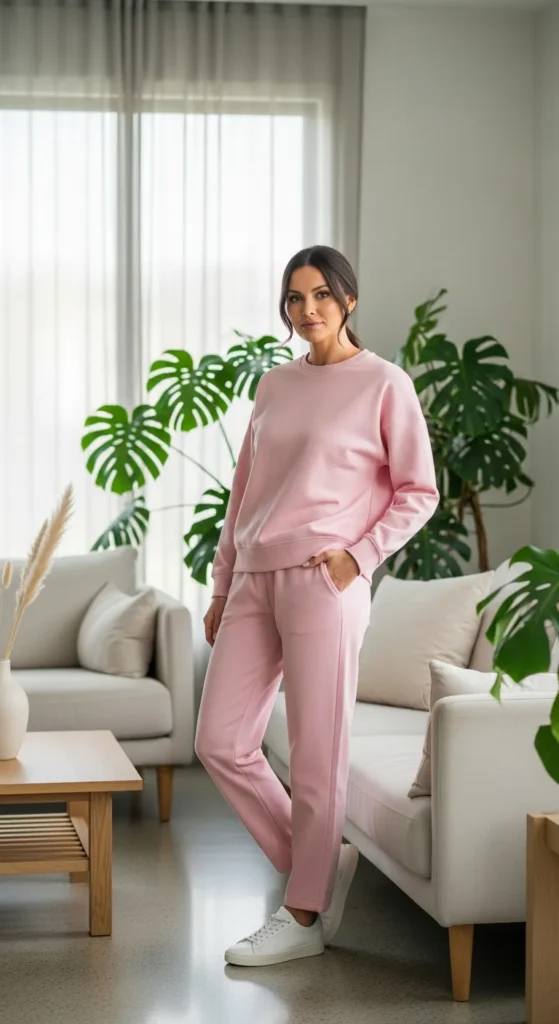Stylist Suggestion: Add sleek white sneakers and a structured mini bag. The contrast between lounge and structure makes the outfit feel more put-together.