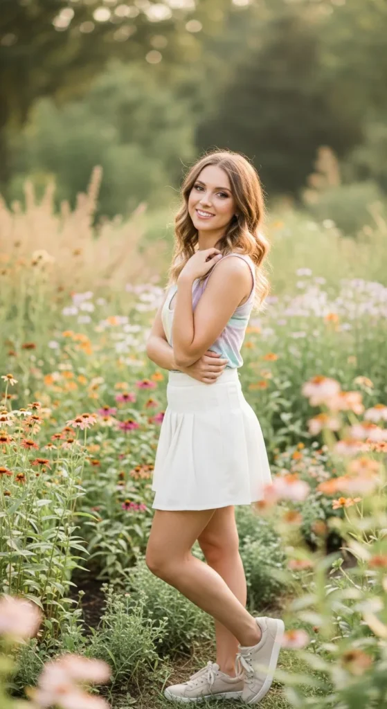 A pastel top with a tennis skirt creates a gentle, dreamy summer outfit that feels lighthearted and perfect for warm, sun-filled days.