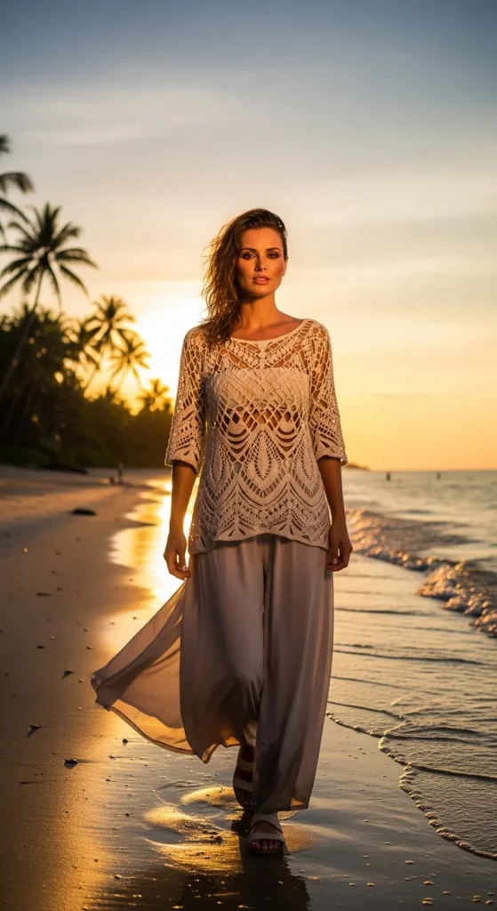 Stylist Suggestion: Add woven sandals and a simple ankle bracelet. The subtle detail at the ankle draws attention when walking barefoot on sand or near the waterline.