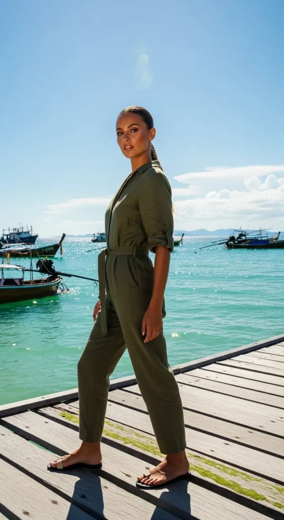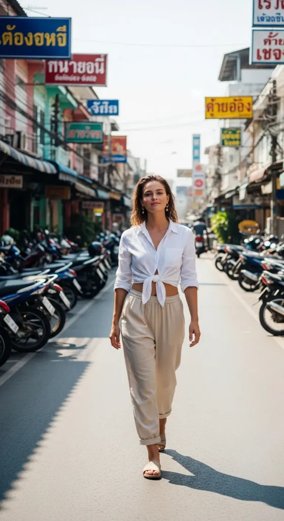 Stylist Suggestion: Wear strappy flat sandals and a woven handbag. The earthy textures harmonize with Thailand’s tropical scenery.