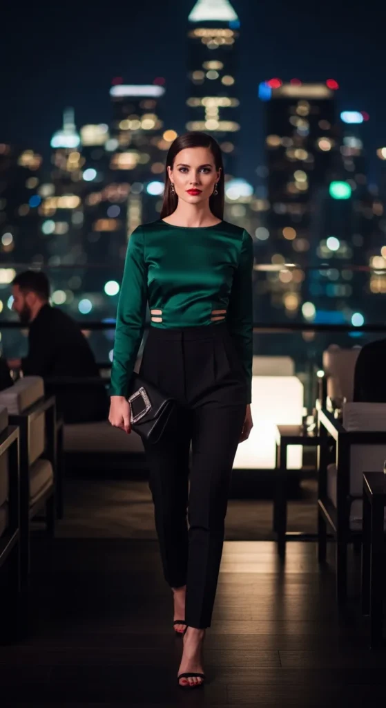 A satin top with subtle waist cut-outs adds modern edge while staying classy. It highlights your shape in a confident yet tasteful way, perfect for a glam birthday night out.