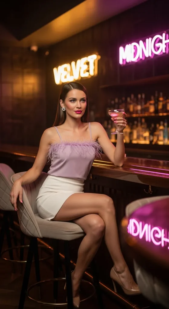 A soft satin cowl top with delicate pearl straps feels romantic yet grown-up. The subtle sheen catches evening light beautifully, making it perfect for rooftop dinners or candlelit birthday celebrations with your closest friends.