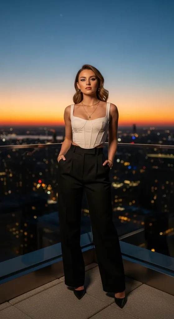 A corset-inspired top with subtle boning adds structure and confidence. It enhances shape beautifully without feeling costume-like, making it ideal for a glam birthday celebration.