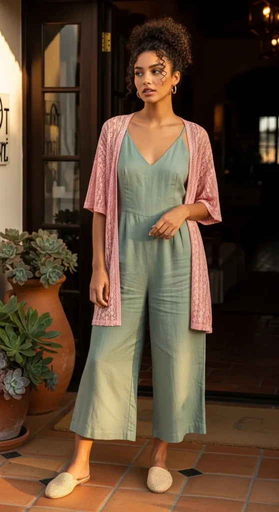 Stylist Suggestion: Layer a lightweight kimono or long cardigan over it if you are moving between air-conditioned and outdoor spaces. This not only adds warmth but also changes the silhouette entirely, making the romper feel like a different outfit from the morning to the evening. A flat raffia sandal finishes this look beautifully.