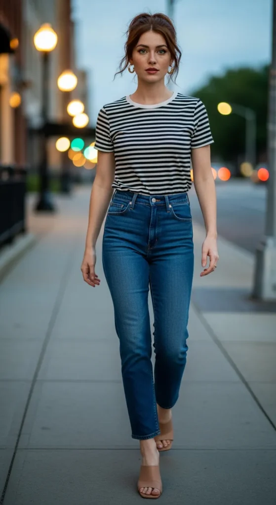 2. The Stripe Top and Dark Jeans Day-to-Night Look