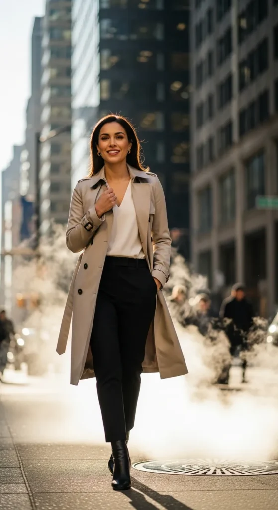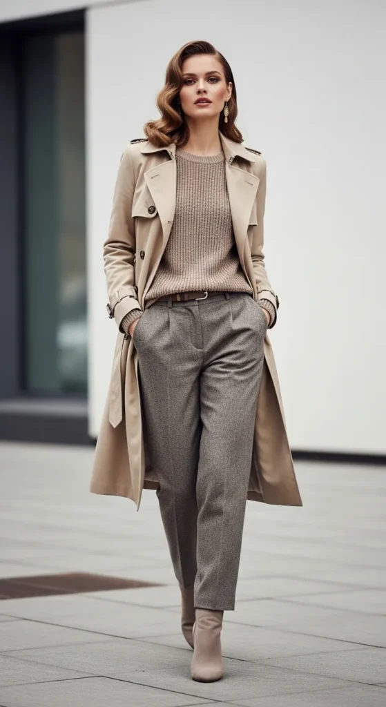 6. Office-Ready Neutral Trench Outfit