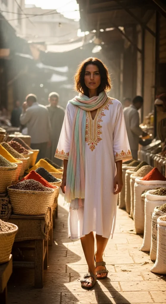 Tripoli’s desert climate calls for outfits that are breezy, sun-smart, and culturally respectful. With golden sands and vibrant city life, your wardrobe can reflect both comfort and style. These 17 outfit ideas combine lightweight fabrics, flowing silhouettes, and subtle color palettes for the perfect warm-weather vibe.
