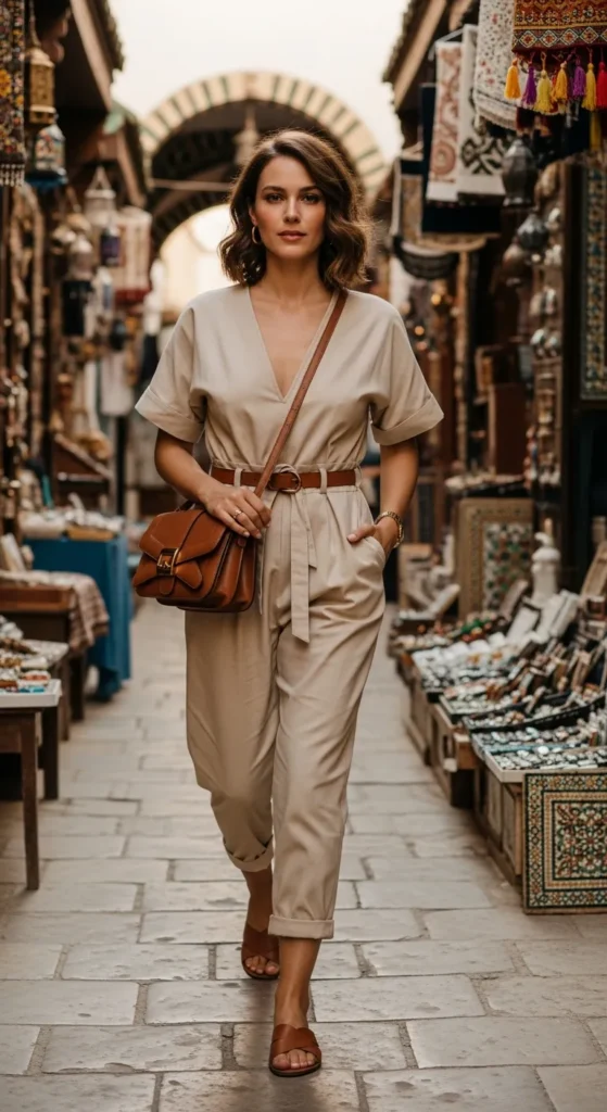 A lightweight cotton jumpsuit with a gentle waist tie is the ultimate one-and-done exploring piece. It keeps you cool while looking intentional, especially when strolling through artisan markets or coastal viewpoints.