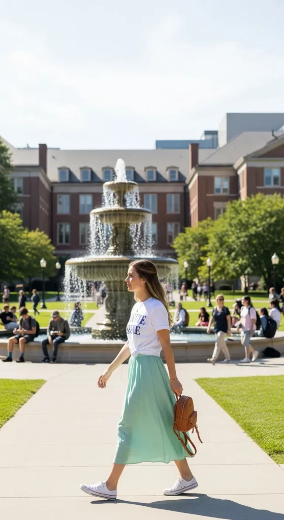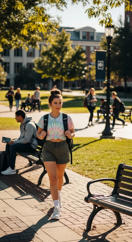 Stylist Suggestion: Add white sneakers and a small crossbody bag to keep the outfit functional and trendy for all-day campus activities.