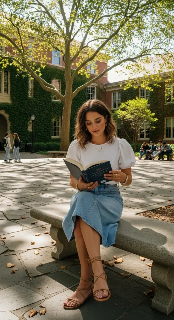 Stylist Suggestion: Finish with canvas sneakers and a small backpack to ensure the outfit remains functional and effortlessly stylish for daily classes.