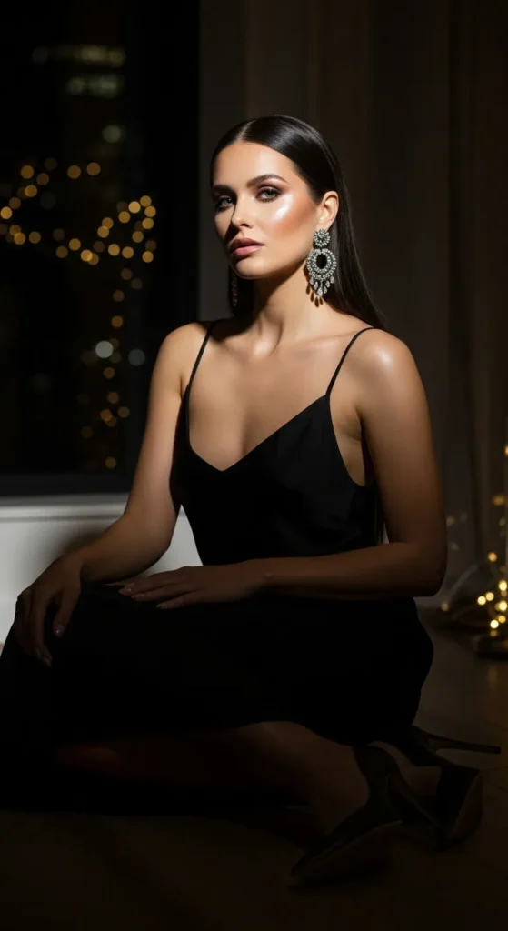A simple slip dress becomes bold when styled with confidence. Clean lines and effortless movement make it a powerful Valentine’s look without excess.