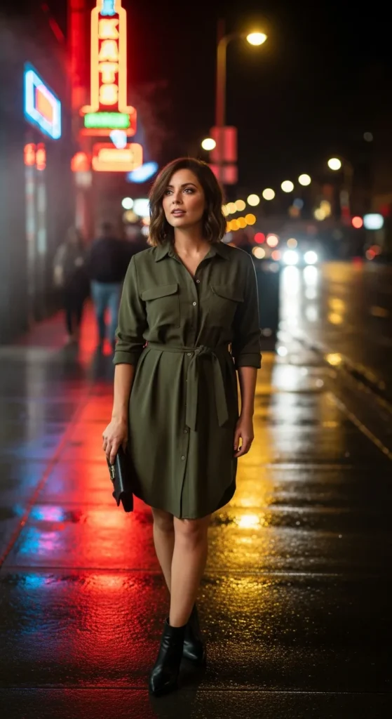 A shirt dress feels effortless yet polished. Adding a belt shapes the waist, turning a classic piece into something playful and flirty for dinner dates or evening strolls.