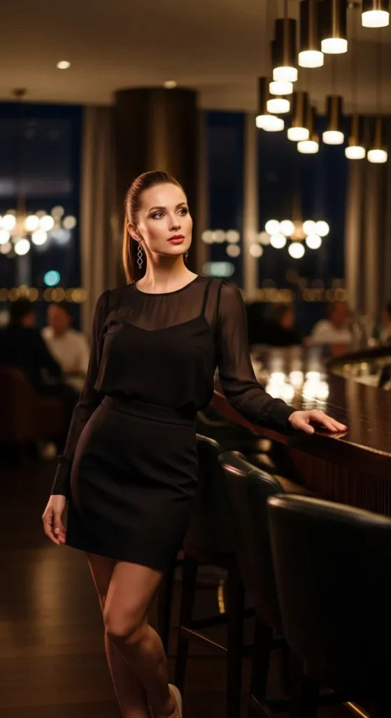 Sheer sleeves add flirt without revealing too much, while a tailored skirt keeps things classy. This balance feels confident and intentional, perfect for dates where elegance and personality matter equally.