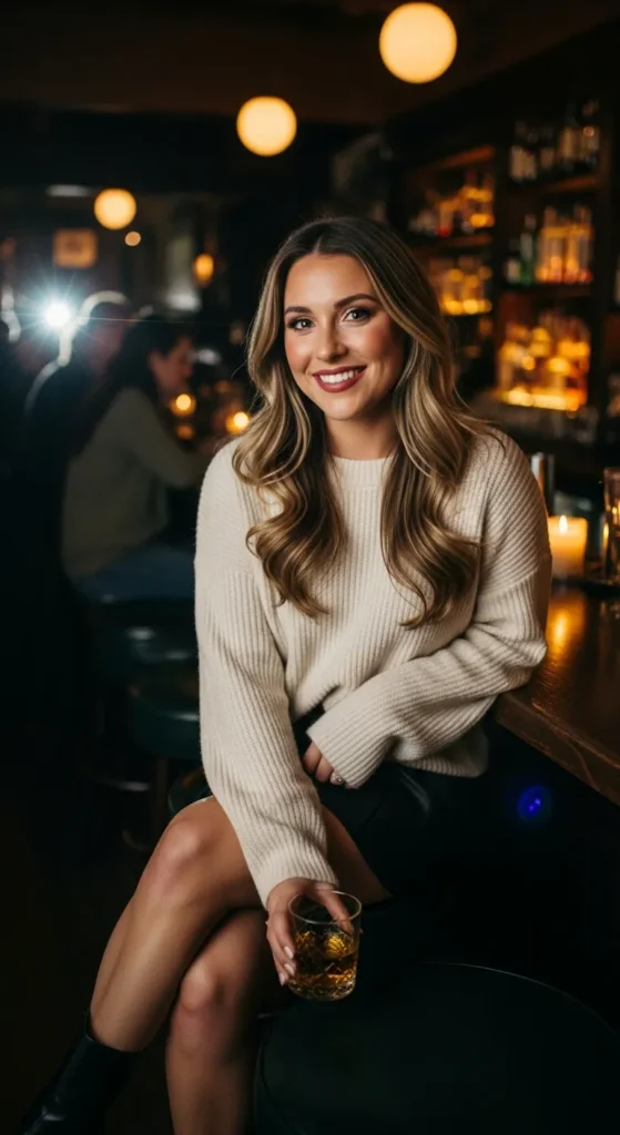 A cozy sweater paired with a leather-look skirt creates contrast that feels playful and confident. It’s perfect for date nights that mix comfort with a touch of bold energy.