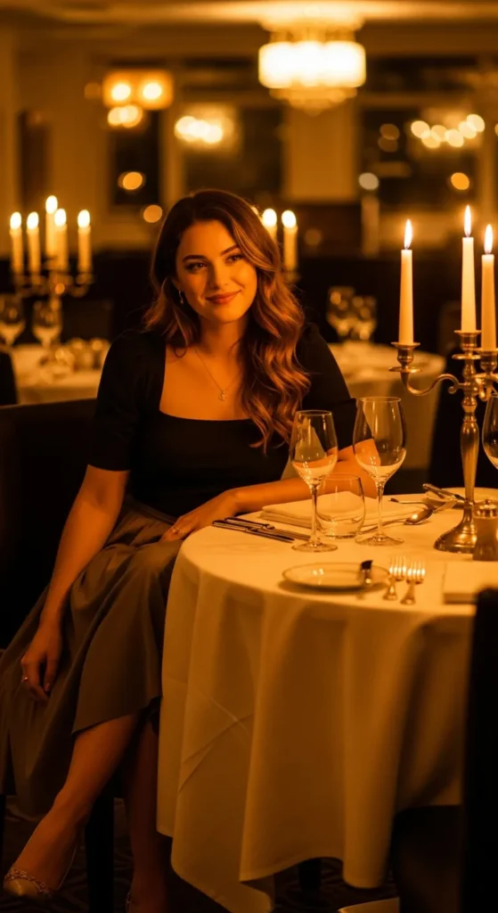 A square neckline feels romantic and flattering, while a flowy skirt adds softness and movement. This combination feels dreamy and perfect for intimate Valentine’s dinners.