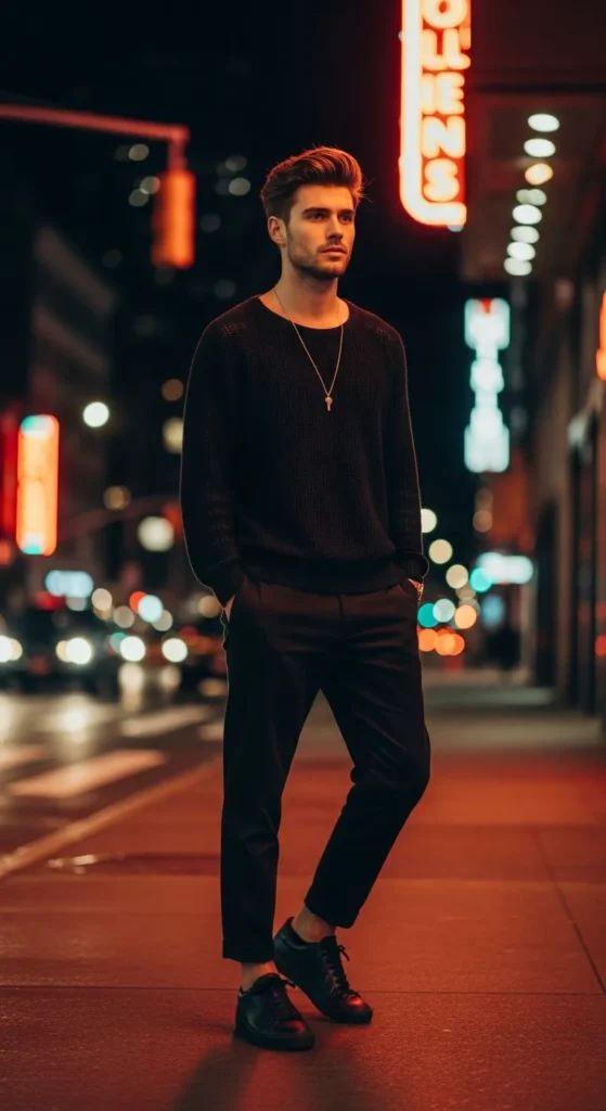This outfit blurs the line between comfort and attraction. It feels relaxed, emotionally available, and genuine, perfect for casual Valentine’s moments that still feel special.