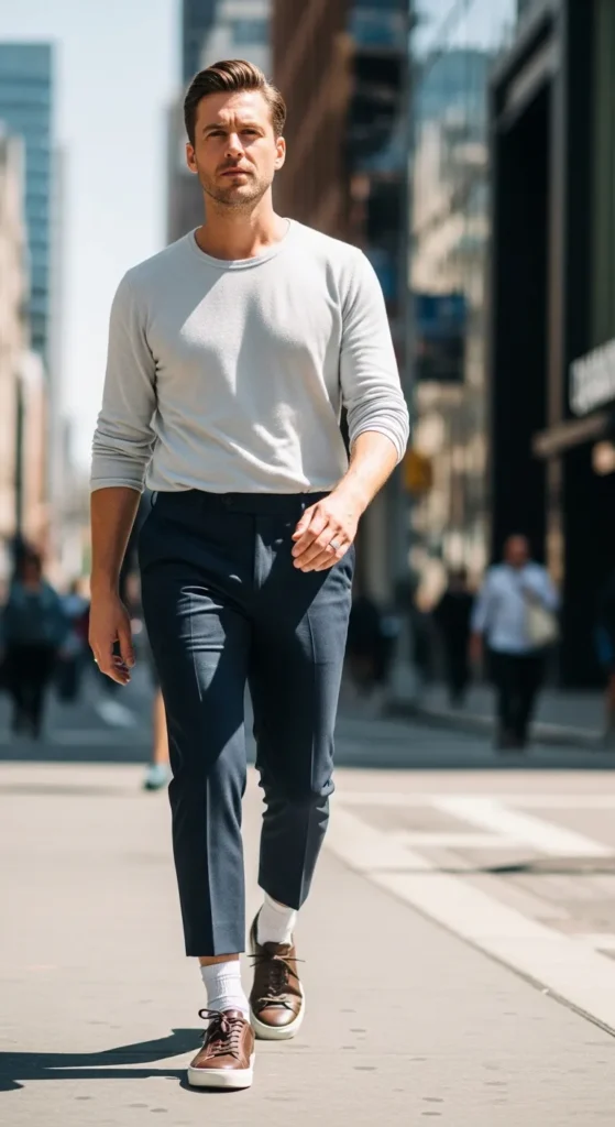 Cropped pants add personality without trying too hard. This outfit feels playful yet stylish, perfect for women who love men with confident, modern fashion sensibilities.