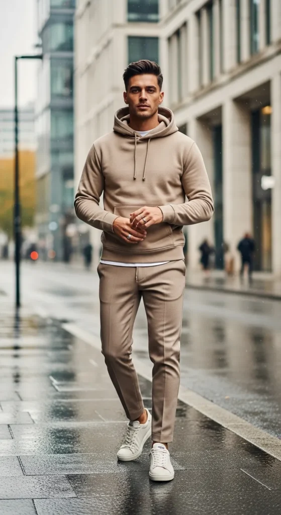 Stylist Suggestion: Choose different shades of beige for depth and add off-white sneakers. This contrast keeps the outfit visually interesting while maintaining a soft, cohesive aesthetic.