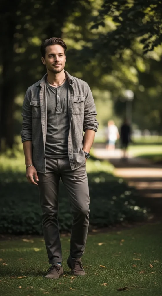 Muted layers feel emotionally calming and thoughtful. This look shows care and sensitivity, creating a comforting presence that feels perfect for Valentine’s Day intimacy.