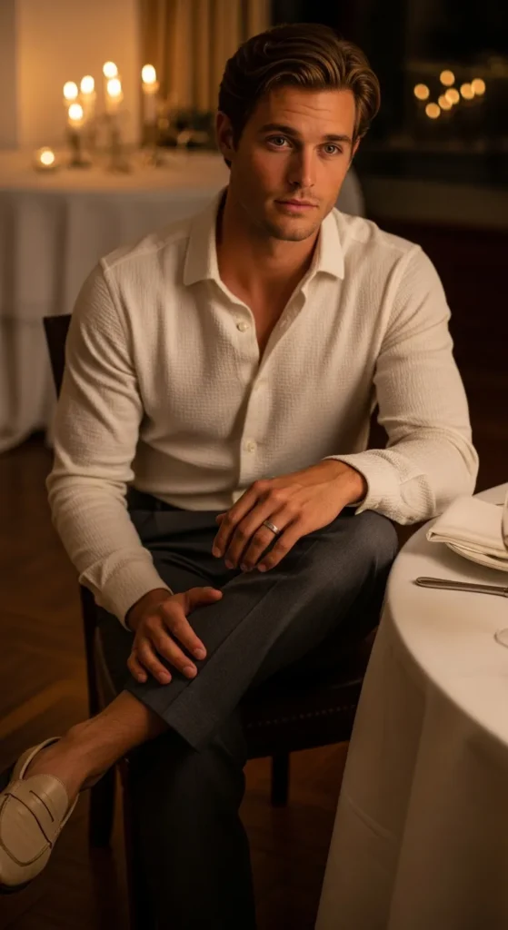 A textured shirt adds depth without effort. It feels tactile and visually interesting, creating quiet attraction through detail rather than boldness, perfect for intimate Valentine’s dinners or casual evenings.