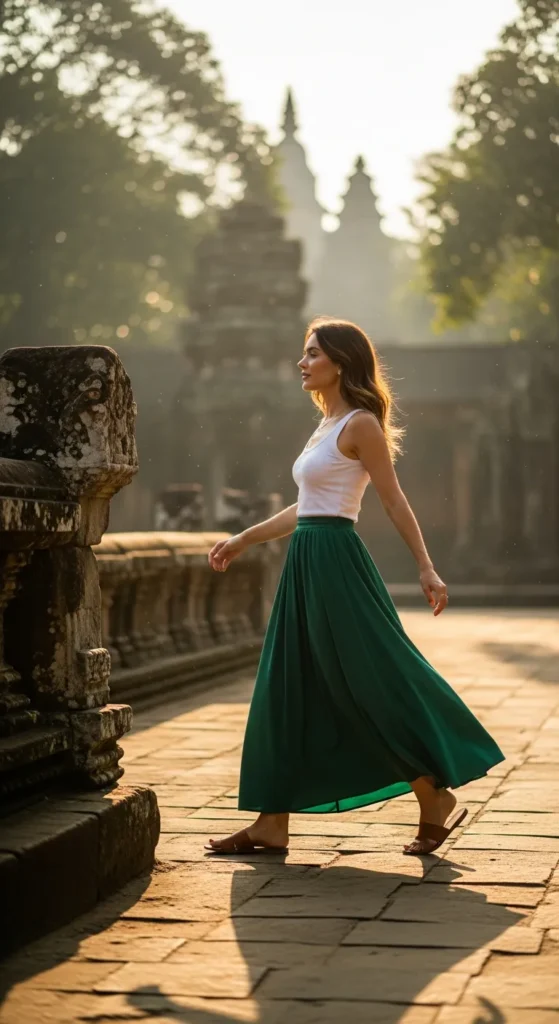 Stylist Suggestion: Choose breathable fabrics and add slip on sandals. Easy footwear keeps transitions smooth when moving between markets, cafés, and temples.