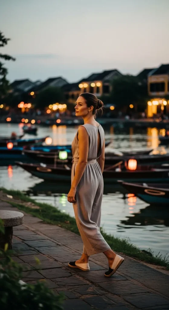 A breathable jumpsuit simplifies dressing while keeping you cool. The open-back detail adds airflow and style without sacrificing comfort in Vietnam’s tropical heat.