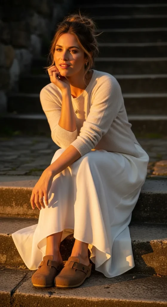 Stylist Suggestion: Pair it with suede clogs and a messy bun. The textured footwear and relaxed hair match the cozy feel of the sweater while keeping the outfit effortless.