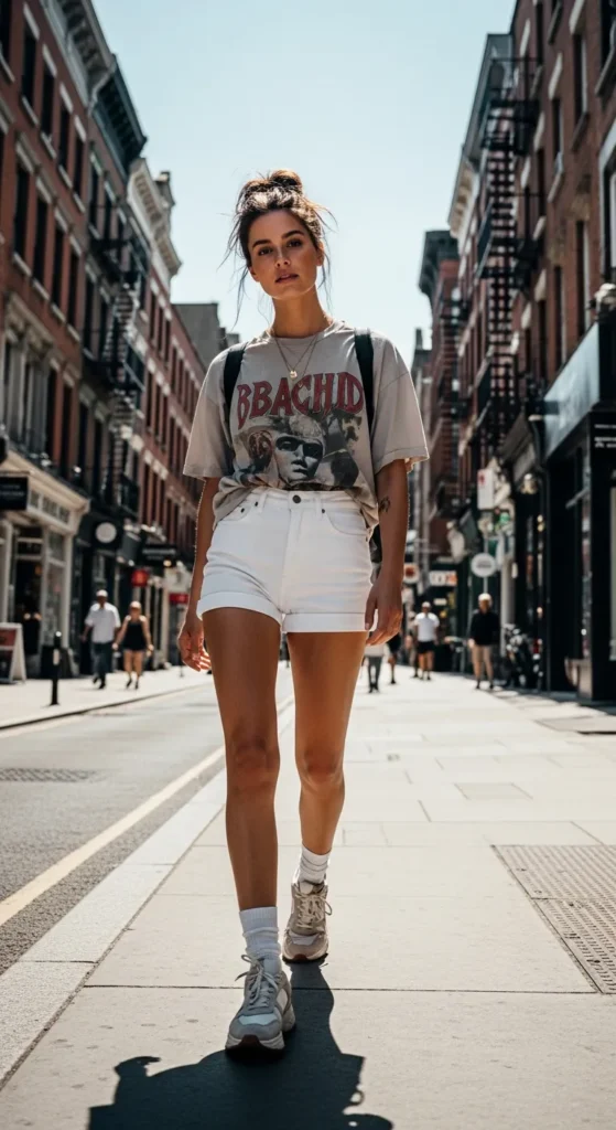 An oversized graphic or plain tee with white shorts feels relaxed and cool without trying too hard. It’s that off-duty summer vibe that looks effortless but still styled enough for casual outings.